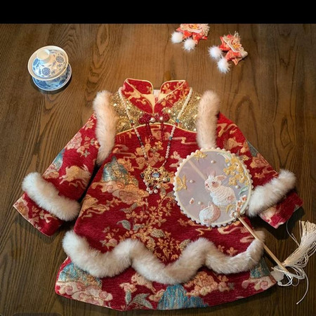 1*4收藏“2025旗袍刺绣玉兔加绒夹棉拜年服”